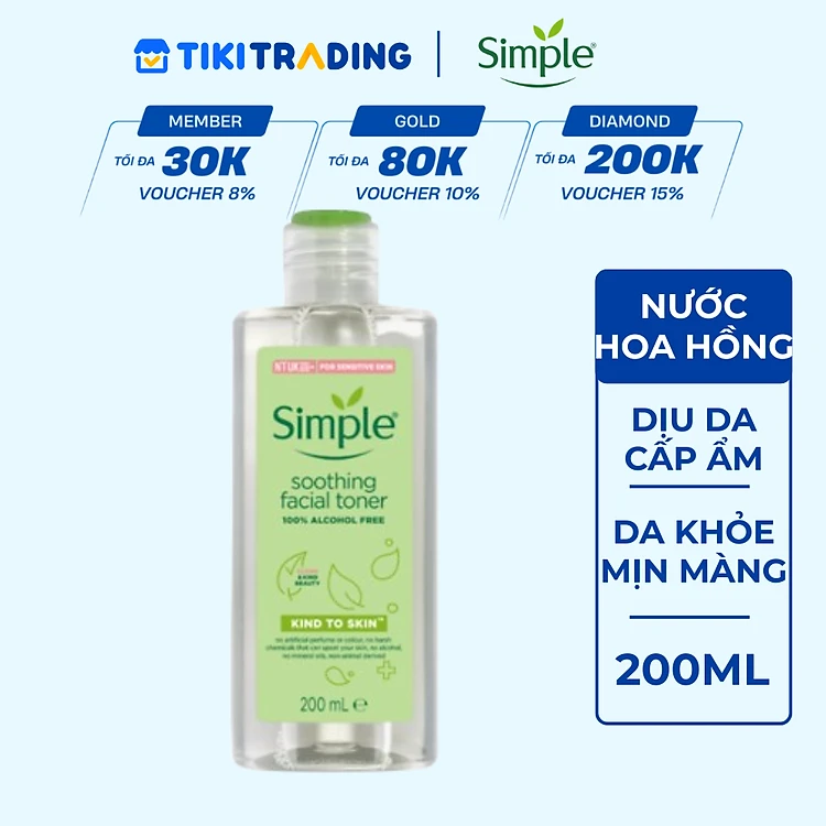 Nước hoa hồng Simple Toner làm dịu và cân bằng độ ẩm cho da - lành tính không chứa cồn 200ml [Chính hãng độc quyền]