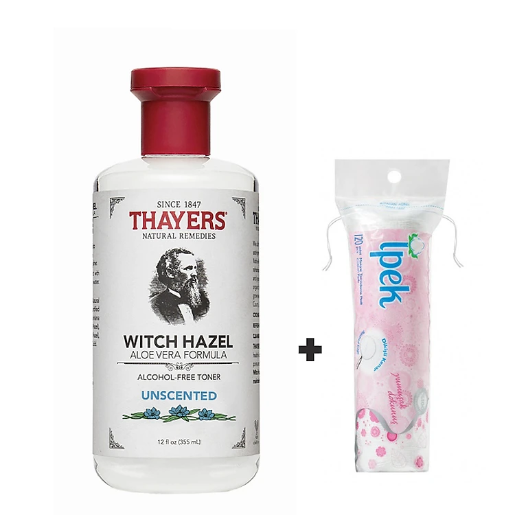 Nước hoa hồng THAYERS Alcohol-Free Unscented Witch Hazel Toner 355ml + Tặng Túi Bông tẩy trang Ipek 80 miếng