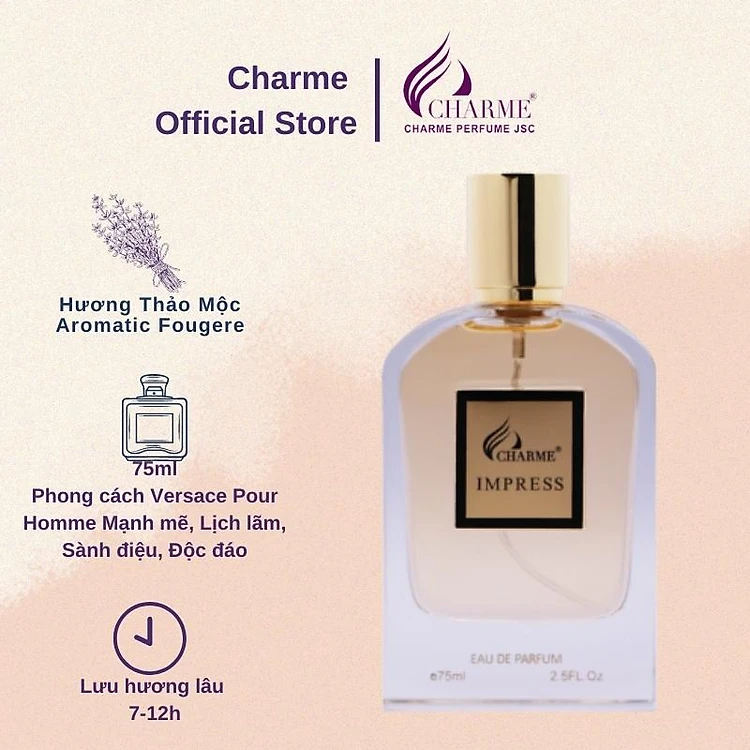 Nước hoa nam thơm lâu, Charme Impress, hương thơm quyến rũ, lôi cuốn, khơi gợi sự nam tính, lịch lãm, 75ml