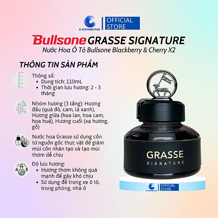 Nước hoa ô tô Bullsone Grasse Signature Blackberry & Cherry (Dung tích 110ml) - Hàng chính hãng - Dung tích: 110ml