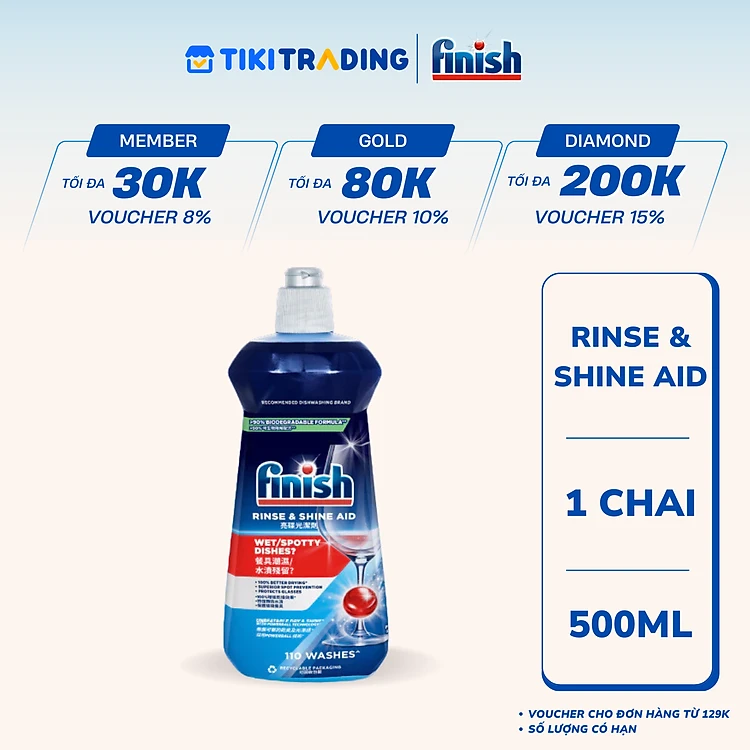 Nước Làm Bóng Chén Bát Finish Rinse & Shine Aid 500ML