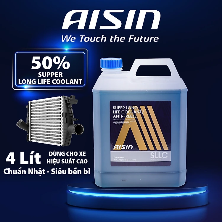 Nước Làm Mát Động Cơ Màu Xanh Dương AISIN Super Long Life Coolant 50% 4 Lít SCPM50A4LB - Nhập Khẩu Chính Hãng