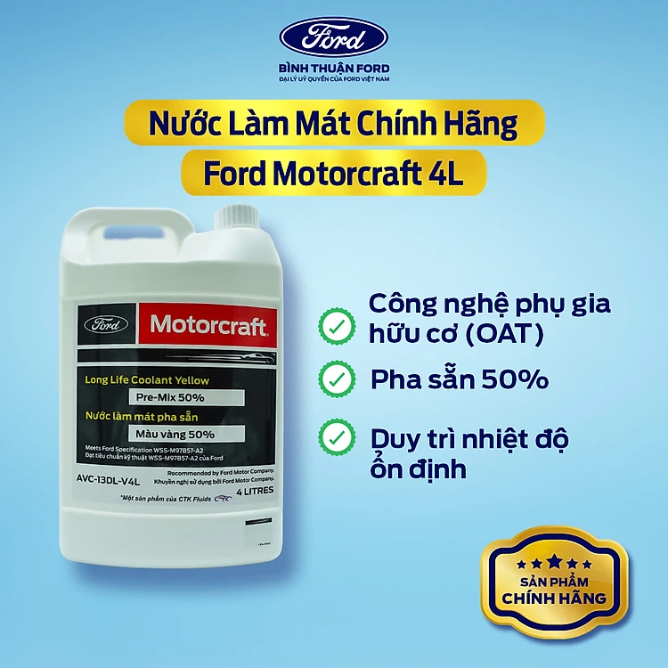 Nước Làm Mát Động Cơ Ô Tô Ford Motorcraft 4L | Bảo Vệ Động Cơ, Chống Đông, Chống Sôi, Chống Gỉ Sét, Tiêu Chuẩn Ford WSS-M97844-D