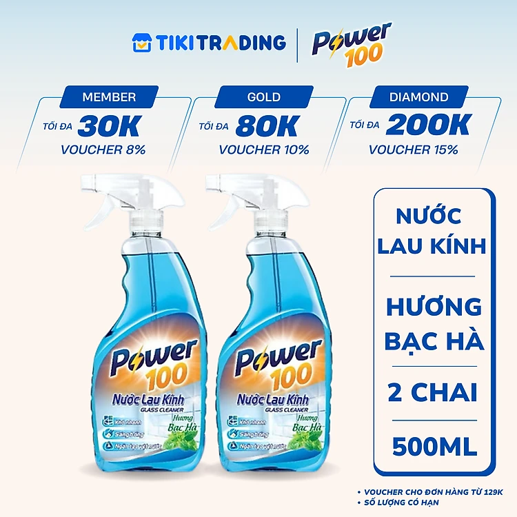 Combo 2 Chai Nước Lau Kính POWER100 Hương Bạc Hà 500mlx2