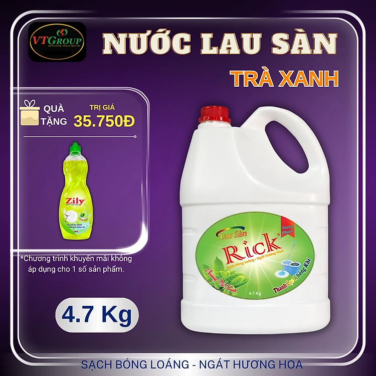 Nước lau sàn Rick 4.7kg - Tặng 1 Chai Nước Rửa Chén Zily 750 gr