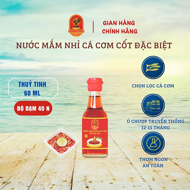 Nước mắm cá cơm Hương Phú 40 độ đạm - Loại nhỏ - Cốt đặc biệt