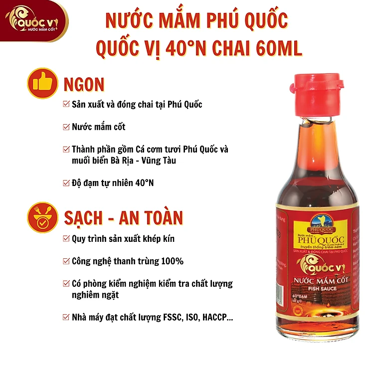 Nước Mắm Cốt Phú Quốc - Quốc Vị Độ Đạm 40N Chai Thủy Tinh 60ml Cá Cơm