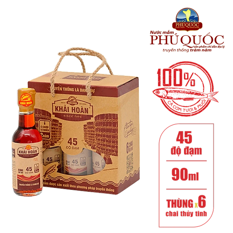 NƯỚC MẮM KHẢI HOÀN 45 ĐẠM CAO CẤP - 6 CHAI 90ML/HỘP