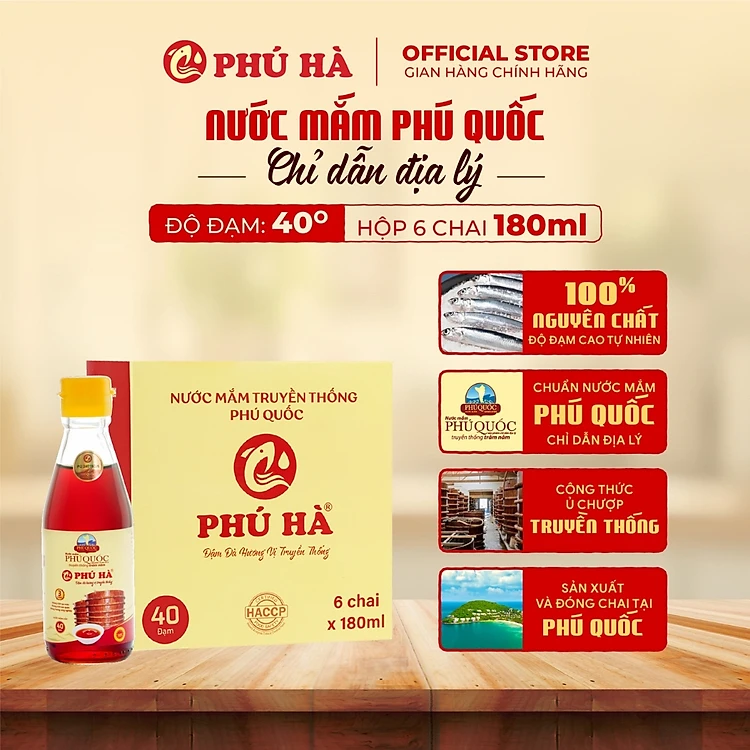 Nước mắm Phú Quốc Chỉ Dẫn Địa Lý Phú Hà 40 độ đạm - Hộp 6 chai 180ml