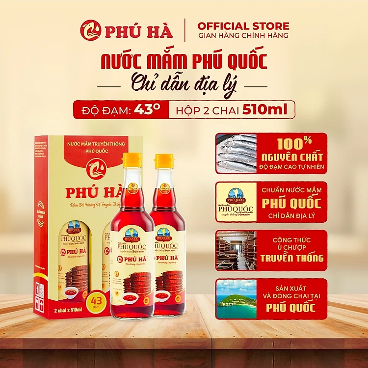 Nước mắm Phú Quốc Chỉ Dẫn Địa Lý Phú Hà 43 độ đạm - Hộp 2 chai 510ml