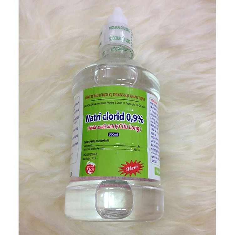 Nước muối sinh lý CỬU LONG sau khi qua hệ thống lọc đều được chạy qua tia UV để tiêu diệt 99,99% vi khuẩn và loại bỏ tất cả những tạp chất có trong nước. Nên khi bạn dùng Natri Clorid 0,9% CỬU LONG bạn sẽ không phải lo lắng về chất lượng sản phẩm . Nước Muối CỬU LONG luôn cam kết đem đến cho bạn những sản phẩm tốt nhất để bảo vệ sức khỏe bạn và người thân. Tác dụng Nước Muối Cửu Long: Nước muối sinh lý Natri clorid 0,9% có tác dụng sát khuẩn và an toàn cho mọi lứa tuổi. Natri Clorid 0.9% cũng có thể dùng làm dung dịch khí dung có tác dụng làm sạch mũi, họng và là dung dịch không thể thiếu cho những bệnh nhân ung thư đã cắt bỏ thanh quản toàn phần phải thở qua một lỗ thở ở vùng cổ để làm mất đi lớp vẩy đóng ở đó, tránh bít tắc lỗ thở. Natri Clorid 0.9% thường được dùng để cung cấp và bổ sung nước cũng như chất điện giải, dùng để rửa mắt, mũi, súc miệng, thích hợp cho mọi lứa tuổi kể cả trẻ em. Phòng chống các bệnh răng miệng: viêm chân răng, viêm lợi, viêm họng, viêm amidan, các bệnh lây qua đường hô hấp, làm sáng da, sáng mắt. Rửa mặt, mắt, mũi, tai và các vết mẩn ngứa dị ứng. Đặc biệt sau khi tham gia giao thông và làm việc ở môi trường khói, bụi, hóa chất, các công trường. Cải thiện tiết dịch đường hô hấp, cho người ốm mệt, làm việc quá sức, chơi thể thao nhiều. Ngâm rửa rau quả sống, hoa quả tươi. Chống cơ thể mất nước, ra mồ hôi nhiều, chống say rượu bia, chống táo bón. Lau người khi cơ thể mệt mỏi. Thành phần: – Natri clorid, nước tinh khiết uống được đã được tiệt khuẩn bằng tia UV -------------------- Cách dùng: Súc họng miệng: Ngâm 20 – 30ml không pha loãng ( nên dùng ở nhiệt độ ấm) súc kỹ trong khoảng 30 giây, thực hiện ngày 2-3 lần. Rửa mắt mũi, tai và các vết thương, mẩn ngứa, dị ứng: dùng bông hoặc gạc mềm sạch tẩm dung dịch rửa ngày 3-4 lần. Rửa mặt để loại bỏ trứng cá và bẩn, làm sáng da. Làm sáng mắt: Ngâm mặt trong chậu nước muối rửa mắt. Ngày rửa 1 lần, thực hiện liên tục trong 2 tuần. Cắt vòi trên nắp, bơm rửa trực tiếp vệ sinh hai hốc mũi hàng ngày. Rửa và massage mặt, vùng lưng để loại bỏ trứng cá và bẩn, làm sáng da, mịn da. Dùng làm nước đánh răng hàng ngày cho trẻ em và người lớn, dùng được với tất cả các loại kem đánh răng. ================== Thận trọng: – Dùng cho trẻ sơ sinh phải có chỉ định, giám sát, của Bác sĩ. =================== Bảo quản: – Để nơi khô mát, xa tầm tay trẻ em.