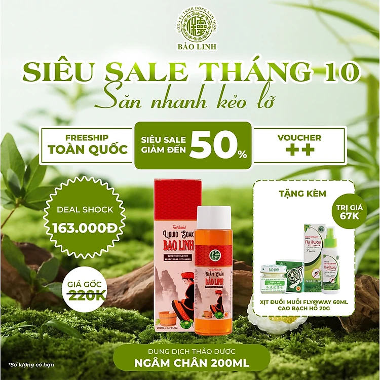 Nước Ngâm Chân Thảo Dược Bảo Linh 200ml, Chiết xuất thảo dược, dùng siêu tiết kiệm, Dưỡng da chân, Khử mùi hôi chân, Lưu thông khí huyết