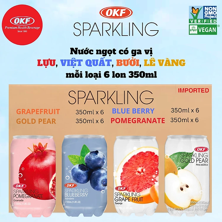 Nước ngọt có ga vị lựu, việt quất, bưởi, lê vàng mỗi loại 6 lon 350ml