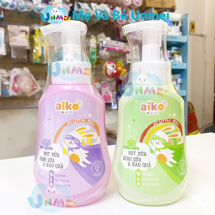 Nước Rửa Bình Sữa Và Rau Củ Quả Aiko 500ml - Dạng Bọt, An Toàn, Tiện Lợi