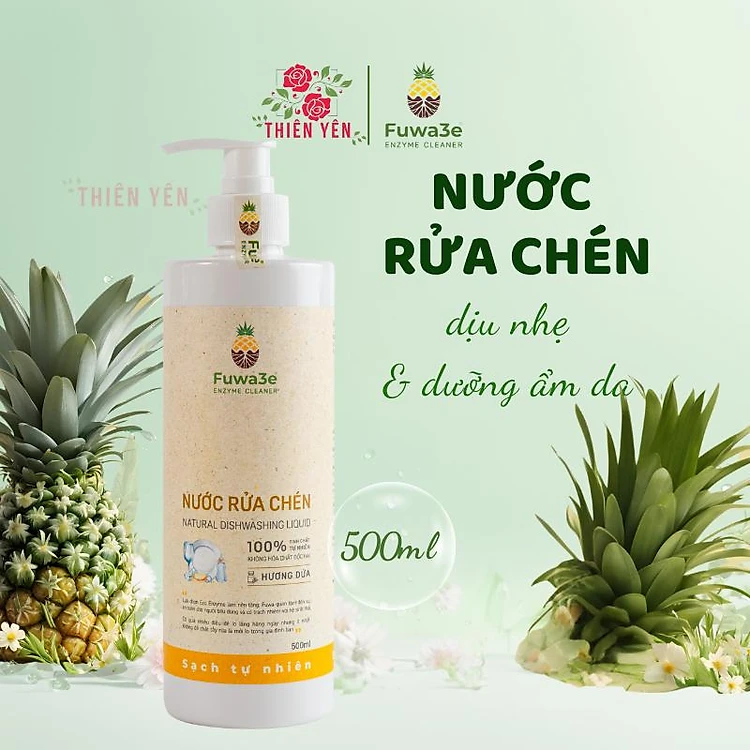 [ Nước rửa chén bát Fuwa3e 500ml an toàn cho bé ] enzym dịu nhẹ da tay không nhờn rít hương dứa
