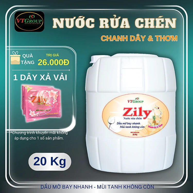 Nước rửa chén Zily can 20kg - Tặng 1 Dây xả vải Zily 10 gói