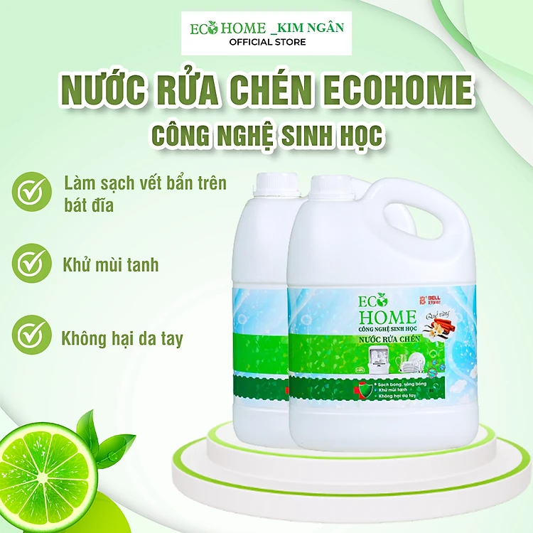 Nước Rửa Chén Công Nghệ Sinh Học ECOHOME 3.6kg Chiết Xuất Chanh Quế Giúp Sạch Vi Khuẩn Bám Bẩn Trên Chén Đĩa