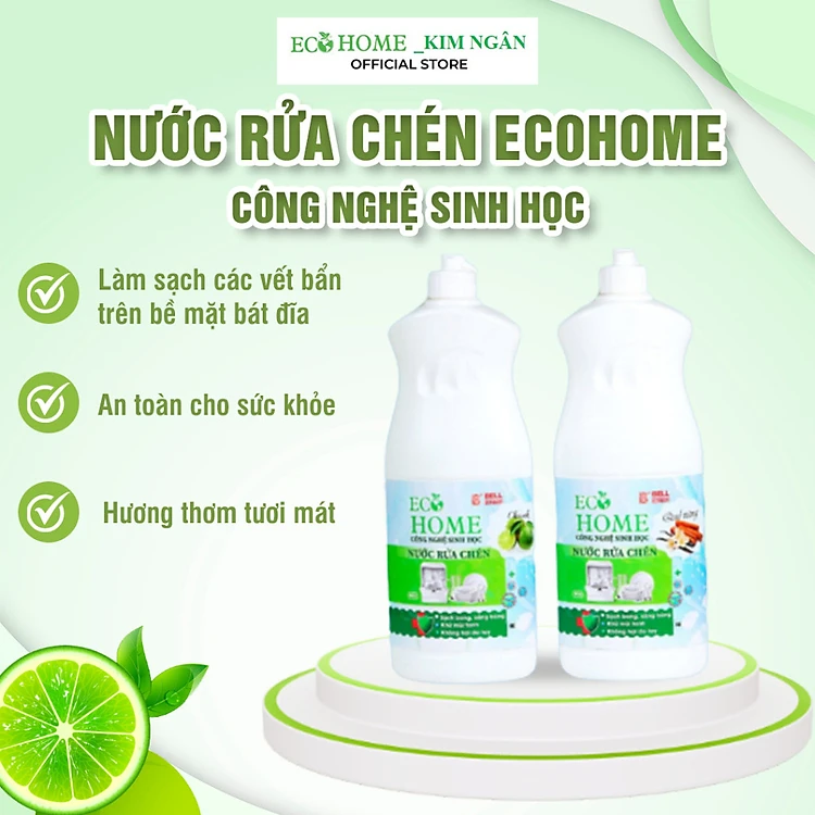 Nước Rửa Chén Công Nghệ Sinh Học ECOHOME 800g Chiết Xuất Chanh Quế Giúp Sạch Vi Khuẩn Bám Bẩn Trên Chén Đĩa