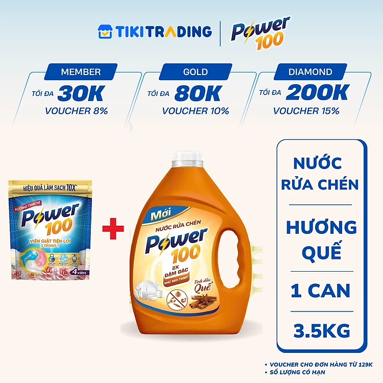 Nước Rửa Chén Power100 Tinh Dầu Quế Can 3.5KG