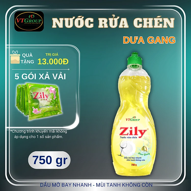 Nước rửa chén Zily 750g - Tặng 5 gói xả vải Zily