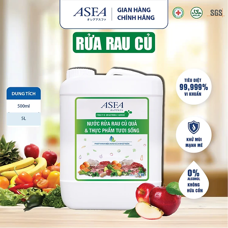 Nước Rửa Rau Củ & Thực Phẩm Tươi Sống Khử Khuẩn, Khử Mùi ASFA Fruit & Vegetable 5 lít An Toàn 100%
