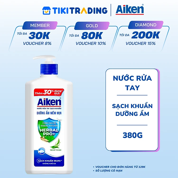 Nước rửa tay Aiken Sạch khuẩn Dưỡng ẩm 380G