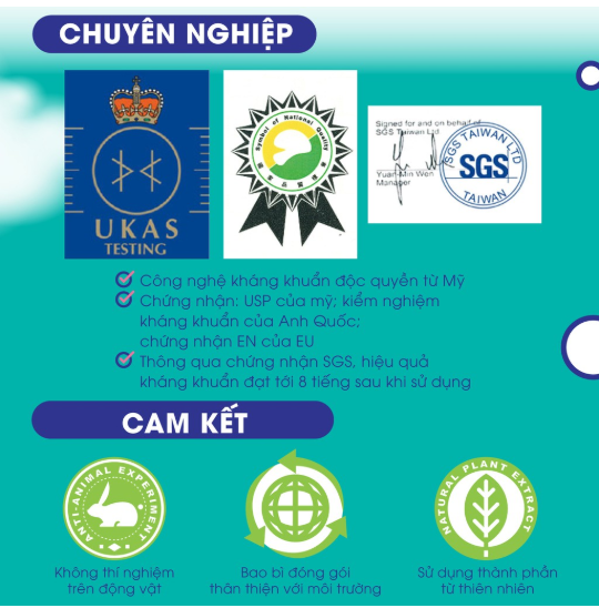 - Đạt chứng nhận của EU, sản phẩm thông qua kiểm chứng của tổ chức IFRA quốc tế với 26 hạng mục kiểm nghiệm về các chất gây dị ứng