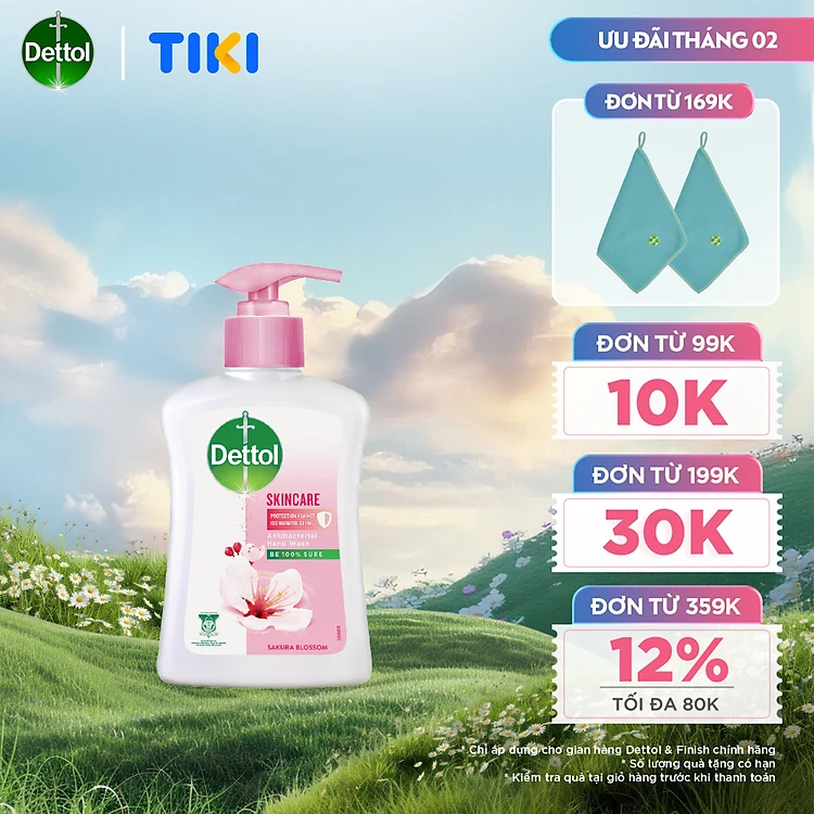 Nước rửa tay Dettol kháng khuẩn dưỡng da, hương hoa anh đào - Chai 250g