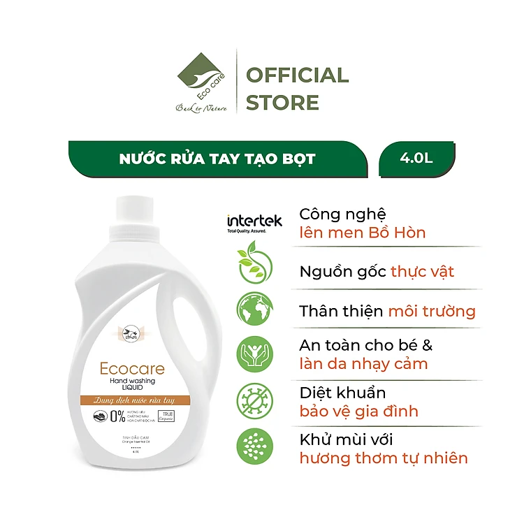 Nước rửa tay hữu cơ diệt khuẩn dạng bọt hương Cam 4Ll thương hiệu Ecocare