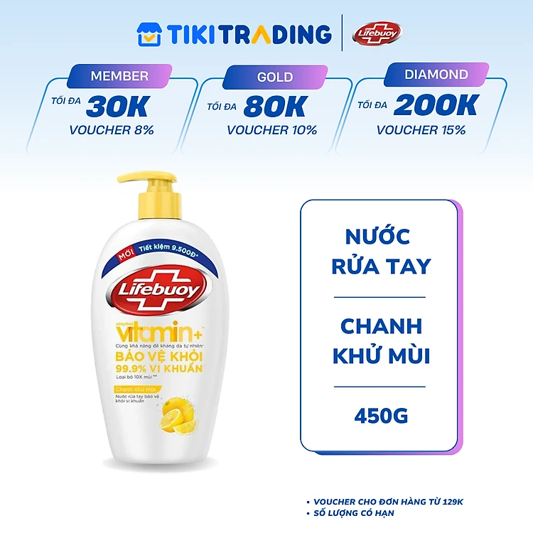 Nước rửa tay Lifebuoy Bảo vệ khỏi vi khuẩn 450gr - Chanh Khử Mùi