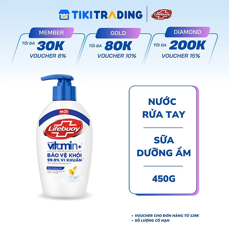 Nước rửa tay Lifebuoy Bảo vệ khỏi vi khuẩn 450gr - Sữa Dưỡng Ẩm