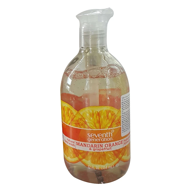 - Nước Rửa Tay Thiên Nhiên Hương Bưởi Và Quýt Seventh Generation (355ml) có nguồn gốc thiên nhiên, không chứa triclosan, chất nhuộm màu và chất tạo mùi hóa học gây kích ứng da tay. Nhẹ nhàng dưỡng da.