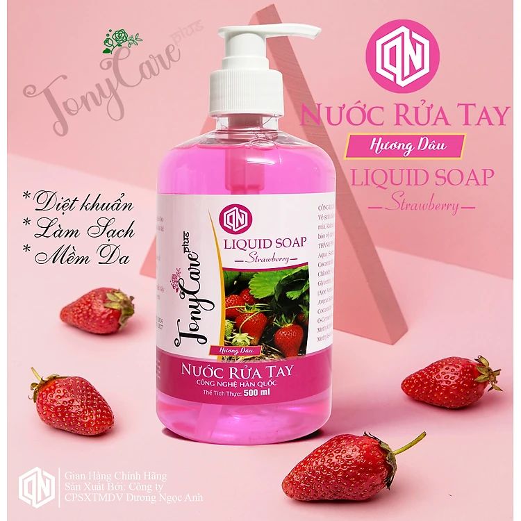 Nước rửa tay Tonycare 500ml Hương Dâu – Diệt khuẩn, hương ngọt ngào, dịu nhẹ da tay – Chính hãng Tonycare