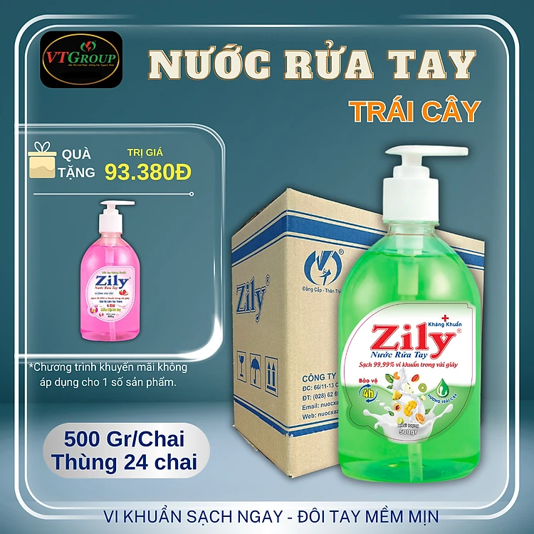 Nước rửa tay Zily chai 500g ( 24 chai/ thùng) - Tặng 1 Chai Nước Rửa Tay Zily 500Gr