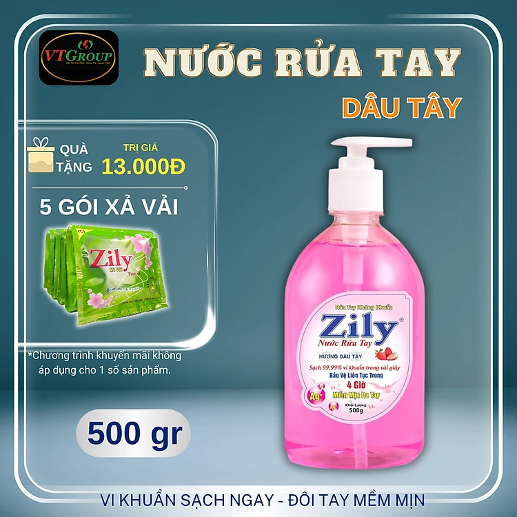 Nước rửa tay Zily Chai 500g - Tặng 5 gói xả vải Zily
