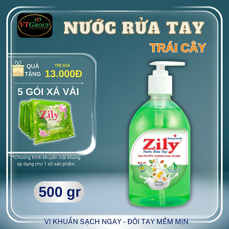 Nước rửa tay Zily Chai 500g - Tặng 5 gói xả vải Zily