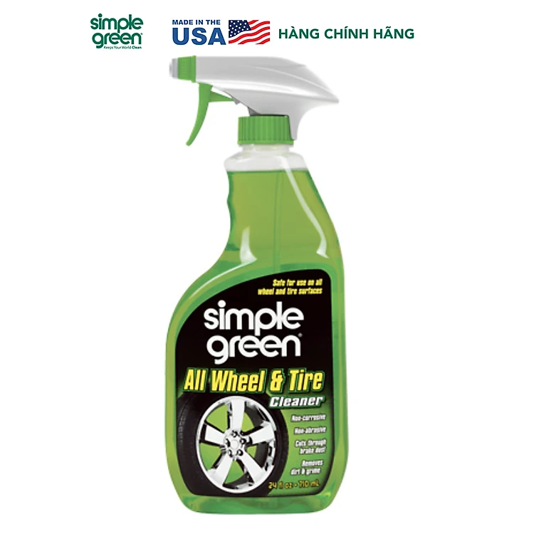 Nước rửa vỏ (bánh) xe cao cấp Simple Green All Wheel & Tire Cleaner, nước rửa lốp xe, dung dịch tẩy rửa vỏ xe, rửa sạch vết bẩn, bụi, bùn đất, dầu mỡ, nhựa đường dính trên vỏ (bánh) xe, bình xịt 710ml.