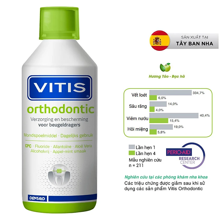 Nước súc miệng cho người chỉnh nha, niềng răng, mang khí cụ chỉnh nha Vitis Orthodontic 500ml - Nhập Khẩu Tây Ban Nha