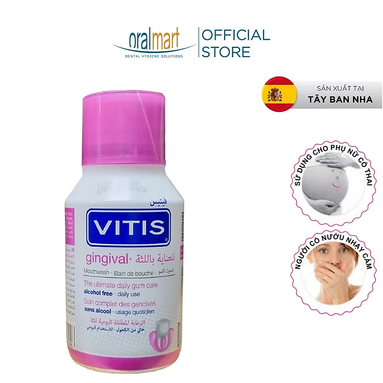 Nước súc miệng dành cho nướu nhạy cảm, sưng, chảy máu nướu, ngừa hôi miệng Vitis Gingival 150ml (dùng được cho phụ nữ có thai)