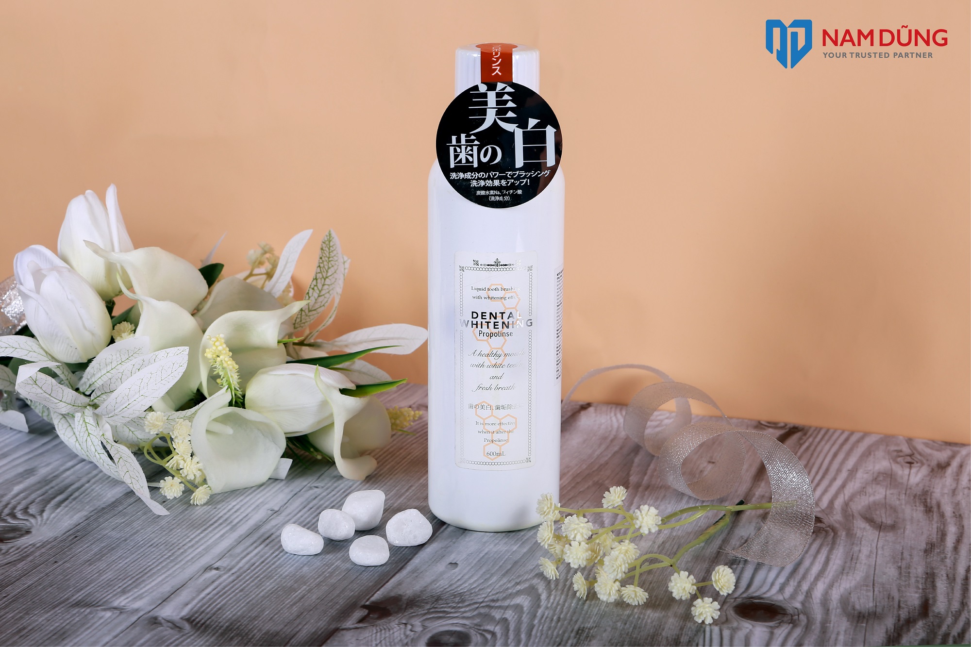 Nước Súc Miệng Propolinse Nhật Bản Whitening làm trắng răng (600ml/Chai) với 100% thành phần thiên nhiên giúp làm sạch các mảng bám thức ăn và các mảng bám của thuốc lá, giúp vệ sinh, sát khuẩn, chống viêm răng miệng hàng ngày, ngăn ngừa các bệnh về răng miệng như viêm lợi, sâu răng, hôi miệng.