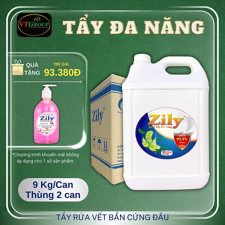 Nước Tẩy, Khử Mùi Đa Năng Zily Can 9Kg (2 Can/Thùng) - Tặng 1 Chai Nước Rửa Tay Zily 500Gr