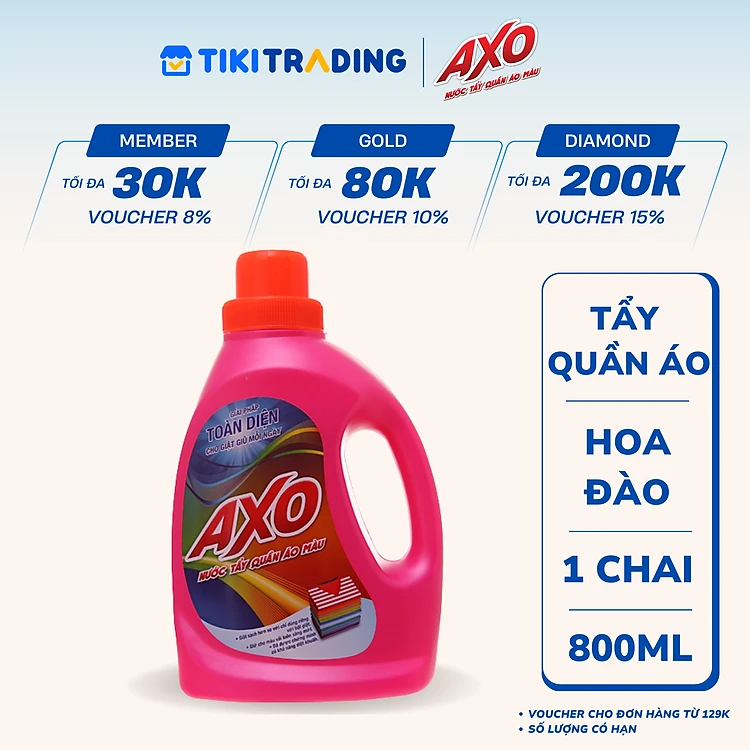 Nước Tẩy Quần Áo Màu Axo Hồng Hương Hoa Đào Chai 800ml