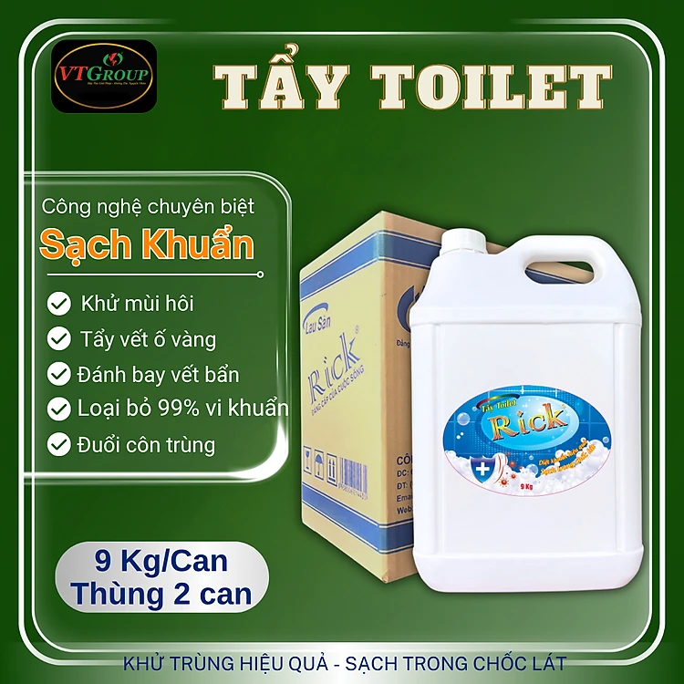Nước Tẩy Toilet Rick Can 9Kg (2 Can / Thùng) - Tặng 1 Chai Lau Sàn Rick 1Kg