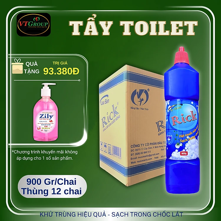 Nước Tẩy Toilet Rick Chai 900g (12 Chai / Thùng) - Tặng 1 Chai Nước Rửa Tay Zily 500Gr