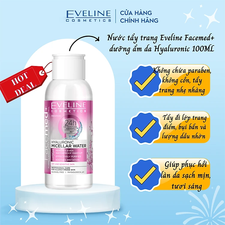 Nước tẩy trang dành cho da khô và da nhạy cảm Eveline Balan Facemed 100ML