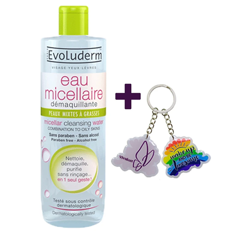 Nước Tẩy Trang EVOLUDERM Eau Micellaire (500ml) - Dành Cho Da Hỗn Hợp + Tặng 1 Móc Khóa Nhựa 2 Mặt
