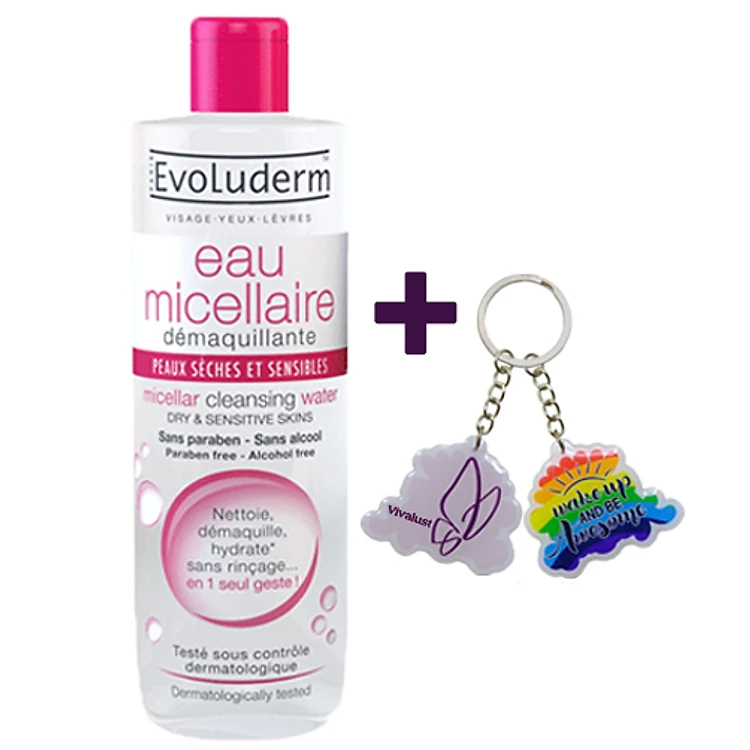 Nước Tẩy Trang EVOLUDERM EAU MICELLAIRE (500ml) - Dành Cho Da Khô Và Nhạy Cảm + Tặng 1 Móc Khóa Nhựa 2 Mặt