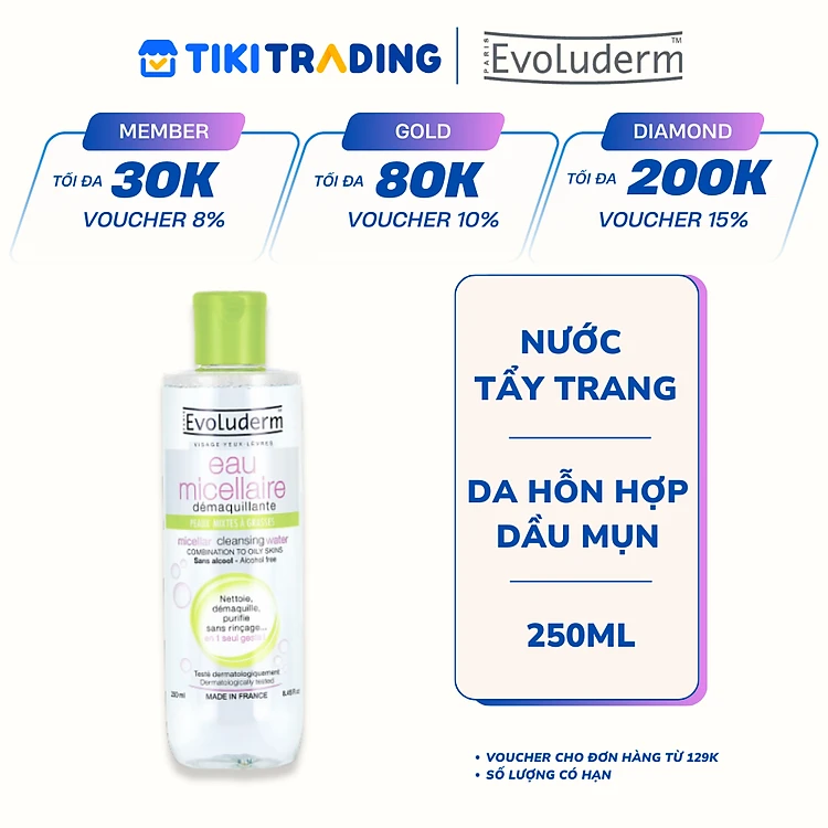 Nước tẩy trang Evoluderm Micellar Cleansing Water 250ml