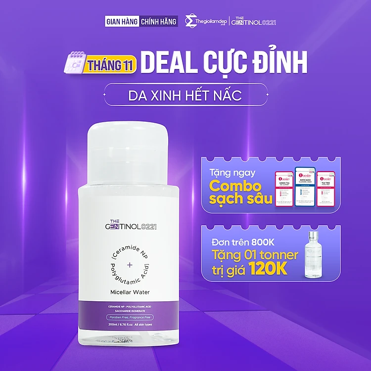 Nước tẩy trang giúp loại bỏ các lớp trang điểm, bụi bẩn, hỗ trợ làm sạch bã nhờn, mụn đầu đen The Gentinol 0221 200ml