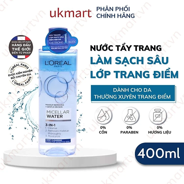 Nước Tẩy Trang L'Oreal Paris Cho Mọi Loại Da 3-in-1 Loreal Micellar Water Da Dầu Da Nhạy Cảm Da Khô